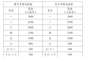 针对参与个人半程马拉松项目的平潭籍市民(以二代居民身份证上的住址为准),录取男、女个人前八名进行奖励,前三名以枪声成绩来排名,其余名次以净计时成绩决定。